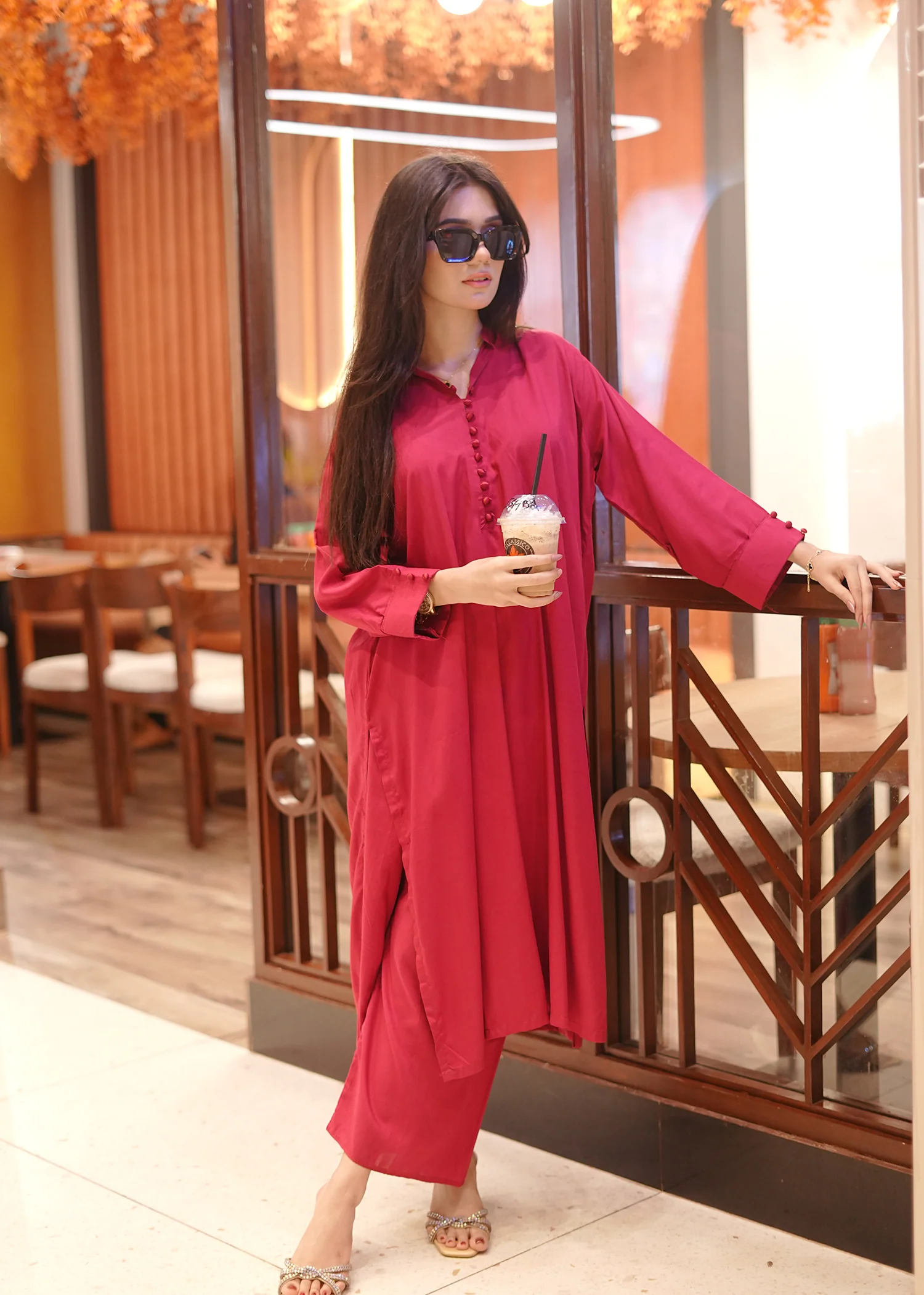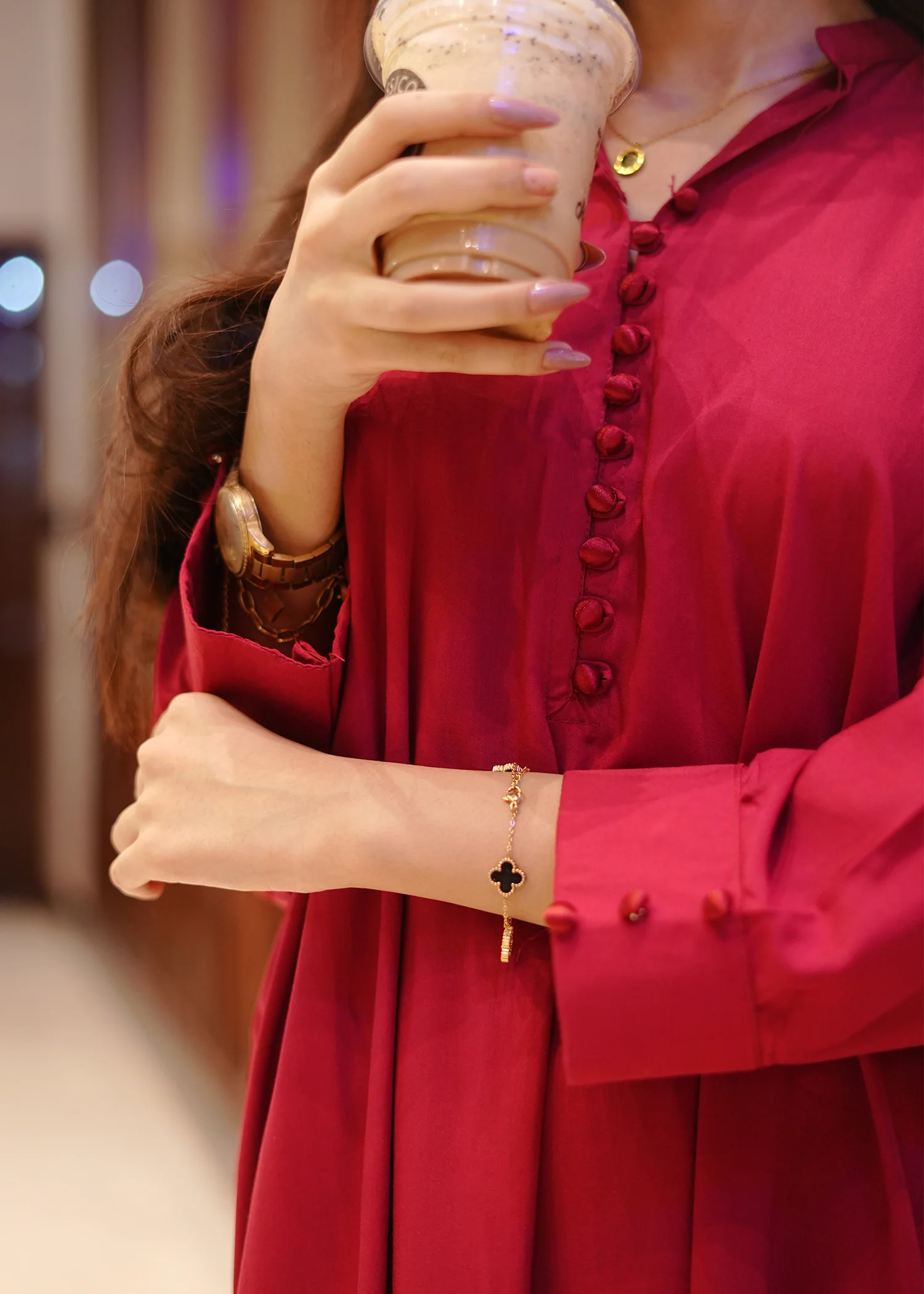 Solid mehroon linen, A rich tone that glows like a berry-colored evening sky.