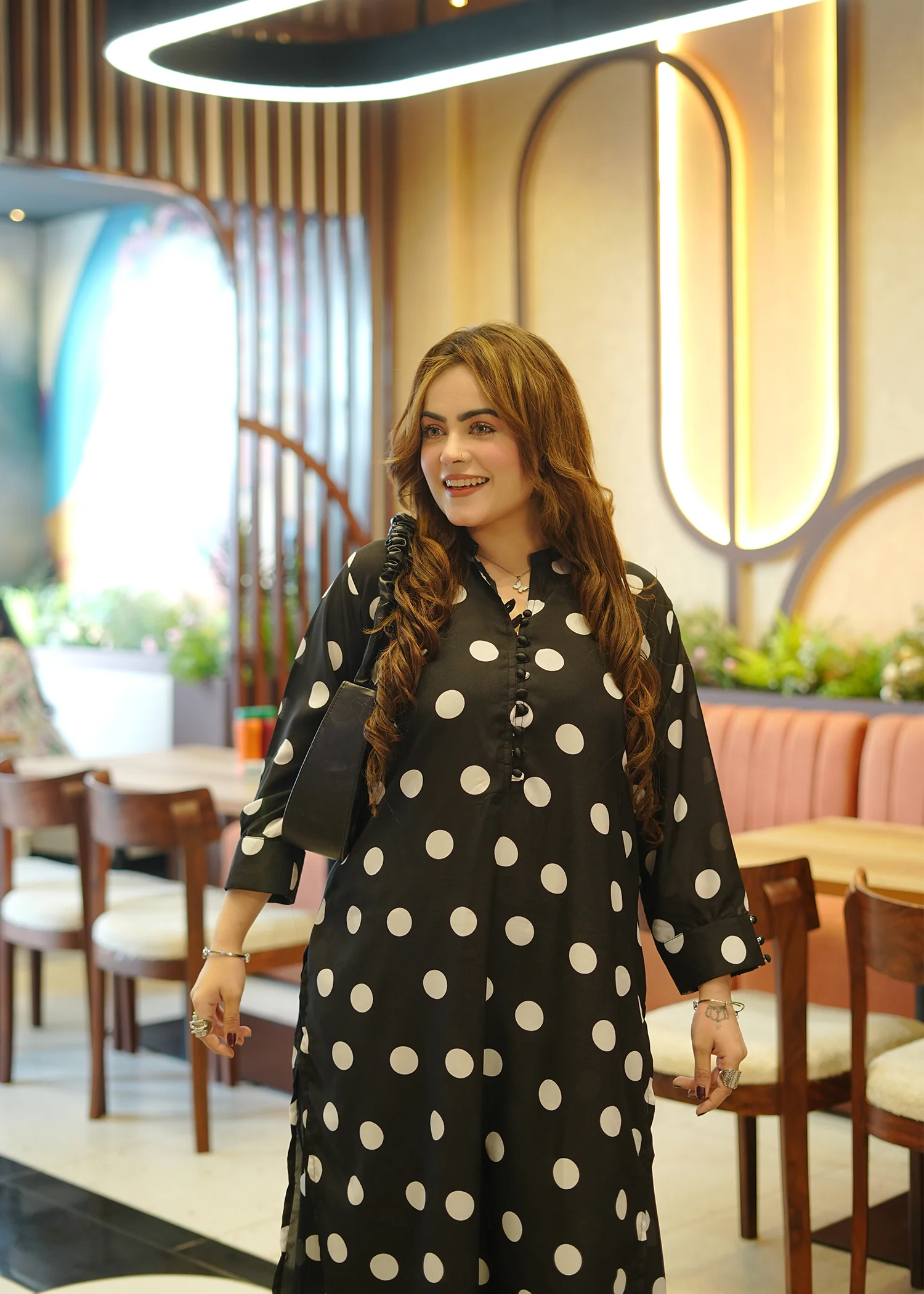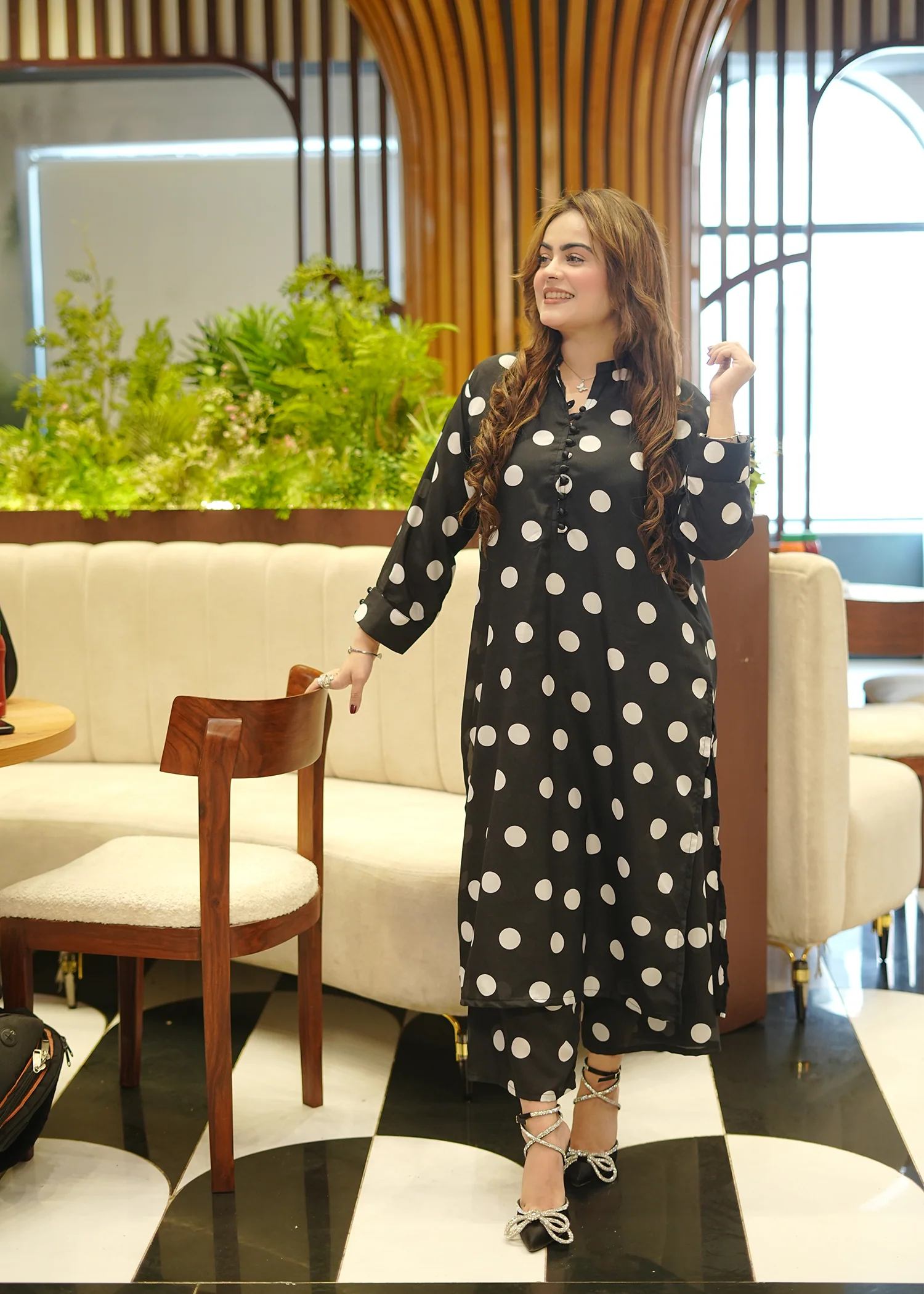 Black & white polka dot thin crêpe