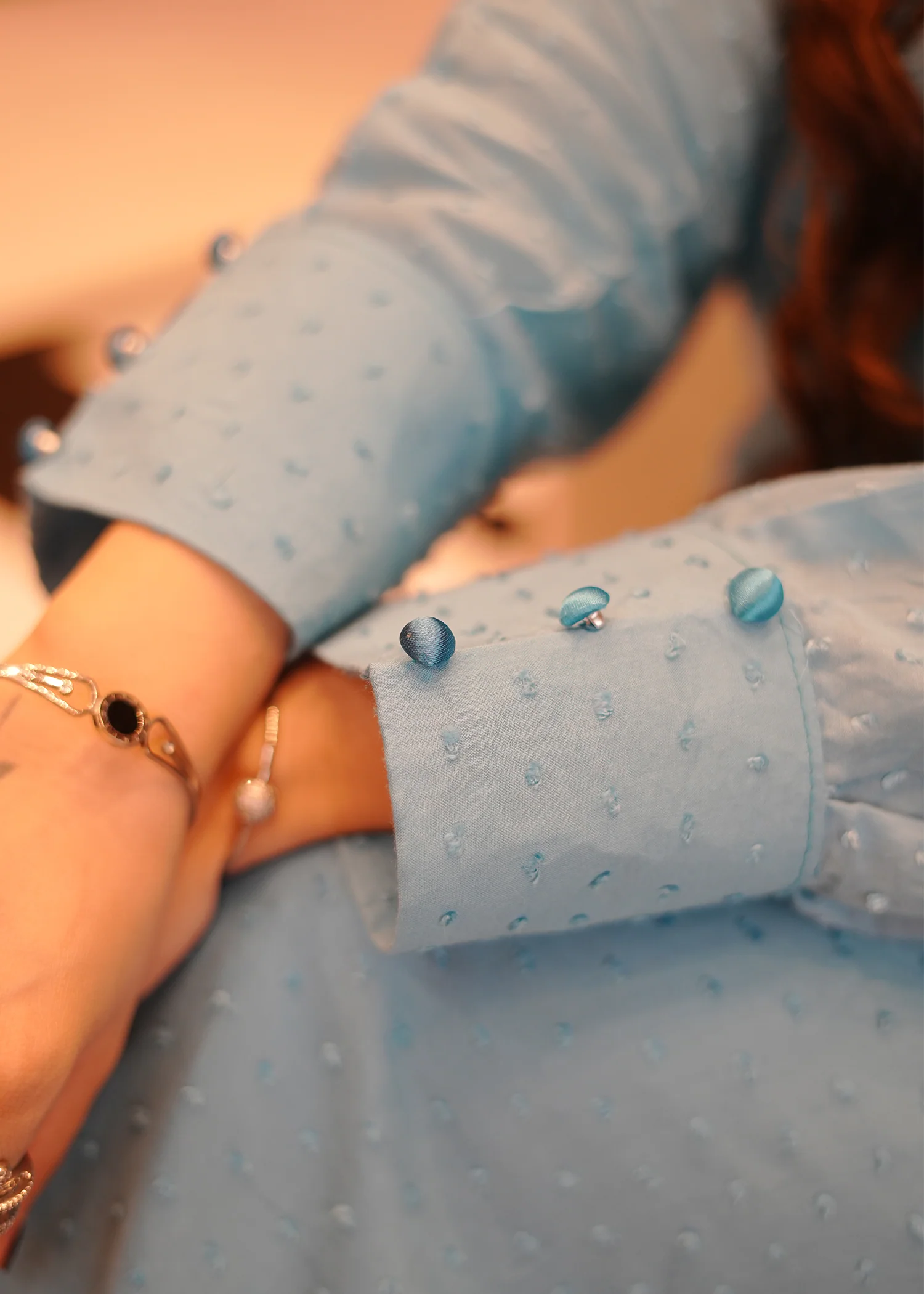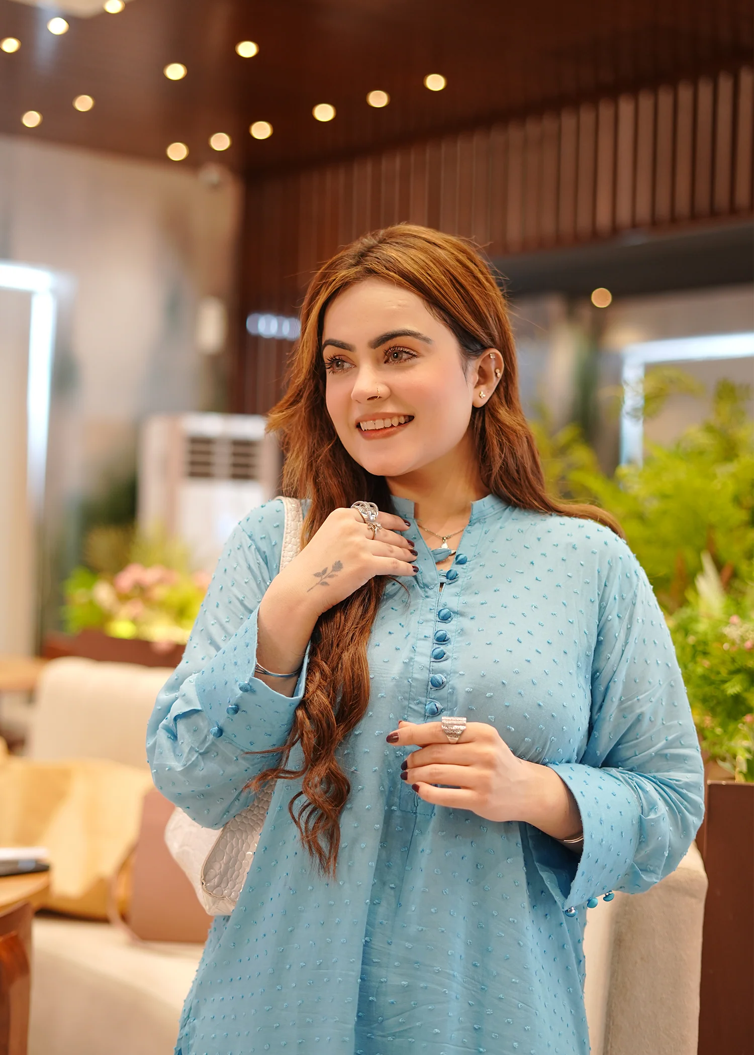 Aqua blue bindi broshia lawn Light, airy, and ocean-inspired perfect for summer.